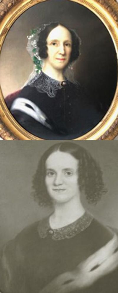 Of the over 170 Cook portraits known to exist, we knew of no instance where Cook had painted a family grouping consisting of three separate portraits depicting mother, father, and child. If our “unknown woman” was the Freemans’ missing wife/mother, why would this be the first Cook family trio known to exist? Was there something unique about this family that they would have especially wanted to be forever linked on three Cook canvases? Or expressed differently, why would it have been so important for Mother and Father Freeman to include only one of their known seven children as one of Cook’s sitters? Where were the other six Freeman offspring? A quick internet search yielded the answer. Daughter Helen’s six siblings never made it to advanced adulthood, and all six had died prior to 1857 when Cook had painted Dr. Freeman and his one surviving daughter. All the more reason for Cook to have also painted Mrs. Freeman --- what better way to memorialize the strong maternal bond between a mother and her one remaining child than to have also included the mother as one of Cook’s sitters. So, logically it made perfect sense that our “unknown woman” might very well be Mrs. Freeman. But were there any telling clues in the portraits themselves?