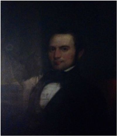 b. 1773 in Yorkshire, England - d. 6 May 1846 in Saratoga Springs, NY; buried in Gideon Putnam Cemetery, Saratoga Springs; emigrated to the US with parents just after the Revolutionary War; credited by many with opening NYC's first soda fountain in 1819; understood the commercial potential of mineral water and in 1823 purchased the highly-regarded Congress Spring in Saratoga Springs; partnered with Thomas Lynch in 1826 to start the first mass-produced and extremely successful bottled water business in Saratoga Springs with distribution eventually throughout the US and in Europe; the water was marketed as "Lynch and Clarke, New York" until Lynch's 1833 death, at which time the bottles were embossed "John Clarke, New York" until Clarke's own death in 1846; in 1829 married the widow of NY attorney Charles White, Eliza Bryar White (1792-1869), who bore three children with Clarke in addition to the four from her first marriage; recognizing Saratoga Springs's tourist potential, co-founded the Saratoga & Schenectady Railroad in 1832, which eventually contributed to the town's prosperity; purchased and improved significant amounts of land in Saratoga Springs, including the development of the town's waterworks system in 1832; member of Saratoga Springs city council in 1841. This painting was on display in 2011 at the National Portrait Gallery of the Smithsonian Institution as part of an exhibit featuring prominent portraits of Washington, D.C. families.