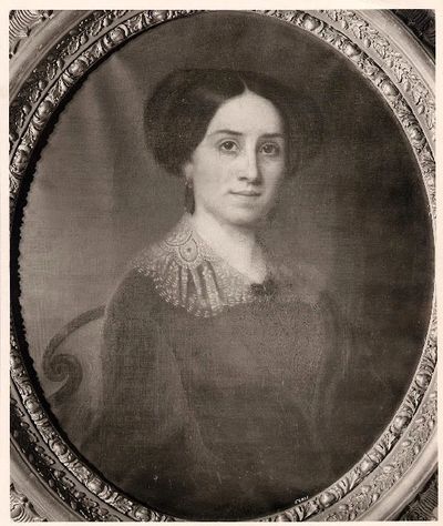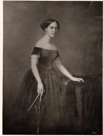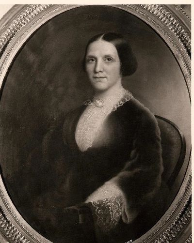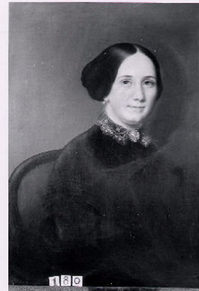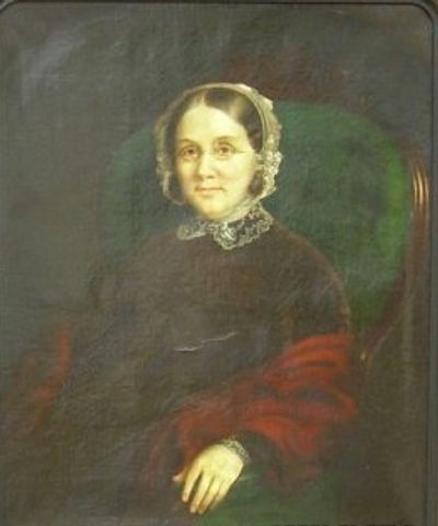 b. 23 Mar 1827 in London, England - d. 6 Oct 1885 in Rochester, NY; buried Mt. Hope Cemetery, Rochester; The Frick Art Reference Library provides this information about the portrait: "Brown hair and eyes. Black dress, white lace collar, red scarf. Brown and gold earrings and brooch. Brown frame chair with red upholstery. Brown background. Signed and dated on back."