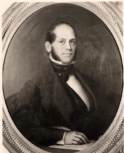 b. 4 Oct 1811, Caledonia (Livingston County), NY - d. 6 Dec 1860, St. Augustine, Florida; co-founder with brother Reverend Donald C. Mann of the Rochester American, a local newspaper, and other publications; on March 10, 1849 married Jane Caroline Parker (1824-1922), daughter of a Canadian expatriate once charged with treason; Caroline herself became an editor of a Rochester woman's publication and bore Alexander two sons, Donald and John Parker, who went by "Parker" and who became a Hudson River School landscape painter; Alexander, a Whig, was deeply involved in the struggle for political power in NY between Democrats, Know Nothings, Republicans, and other factions (he predicted a Republican demise by 1856); joined the New York Times (1858) and moved his family to NYC (18 West Street); soon Alexander's pleurisy drove him and his family to St. Augustine, FL, where he farmed; though his "affections traveled North again," he never made it and died of a stroke at 49. There are interesting parallels between the lives of Mann and Cook [see Cook Biography]: their chronic illnesses and flirtation with the Know Nothings, Mann apparently corresponded with Millard Fillmore, whose son was painted by Cook [see Millard Power Fillmore], Boy with Hobby Horse was exhibited in the Arcade, across the street from Mann's office in Rochester's American Building. Mann's portrait was sent to the National Academy of Art & Design, NYC, for exhibition, 1852, cat # 363.